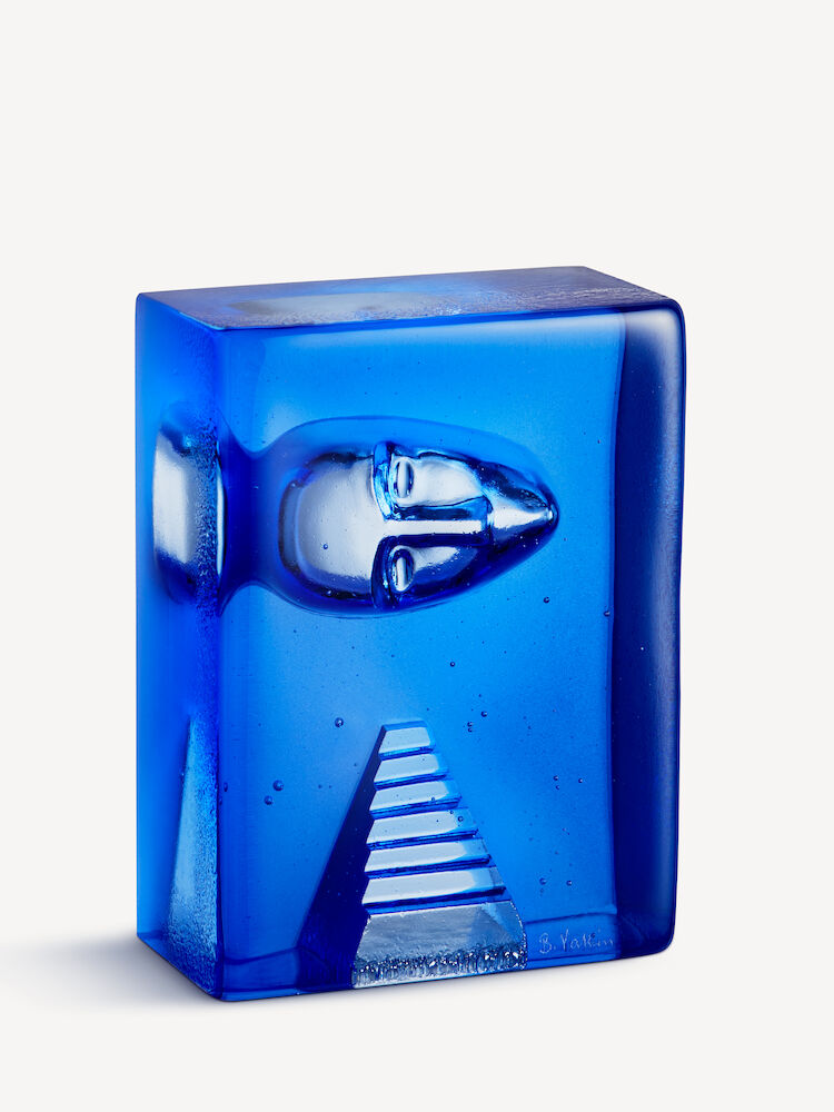 Azur Stairs av Bertil Vallien er en del av Kosta Boda Artist Collection. Azur Stairs i blå farge er støpt i karbonform og har et ansikt som hviler på en trapp.